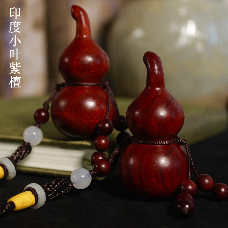 Indian leaflet red sandalwood gourd handle piece Fu Lu car pendant Mahogany text play carved crafts decoration