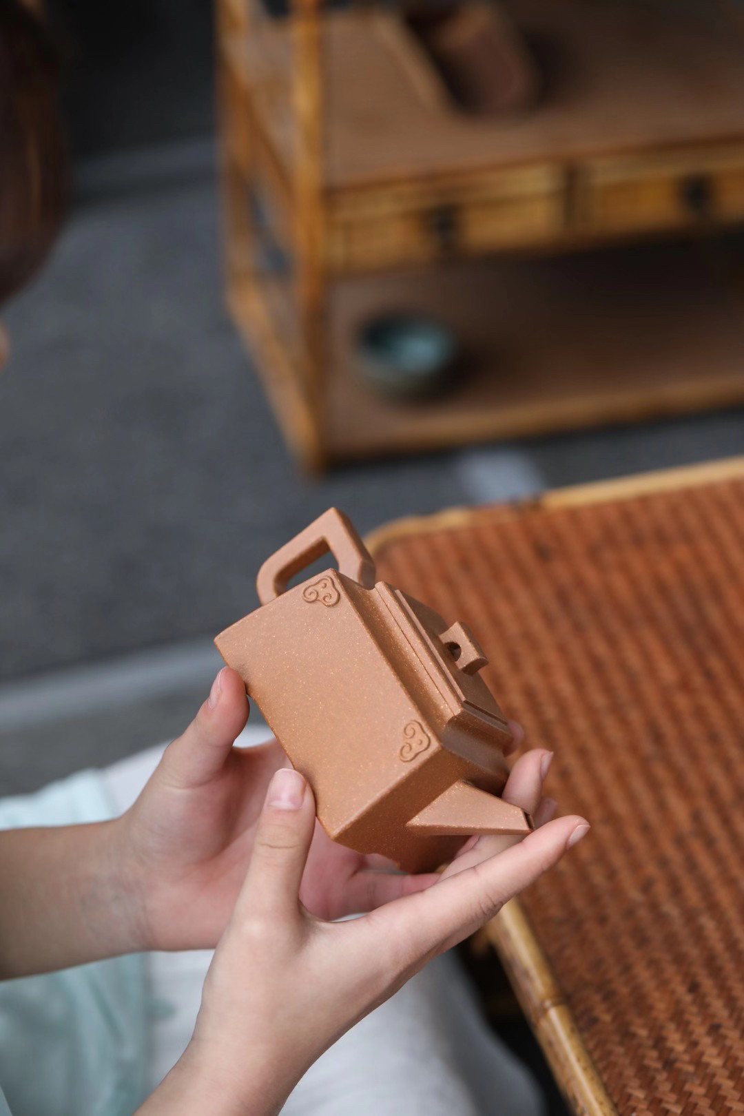Taoying sand art Yixing original mine purple sand craft making pot famous all hand-made Kwai yellow section mud Ruyi lifting square 270CC