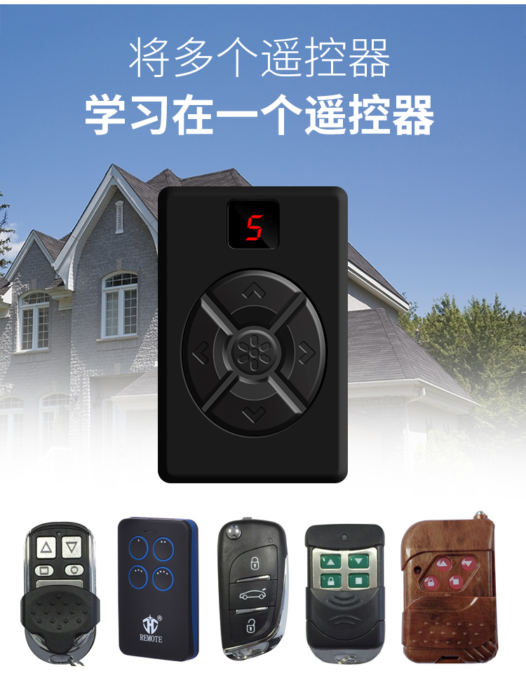 Juhui five-in-one pair copy multi-full-frequency electric roller shutter gate telescopic key 433 garage door remote control