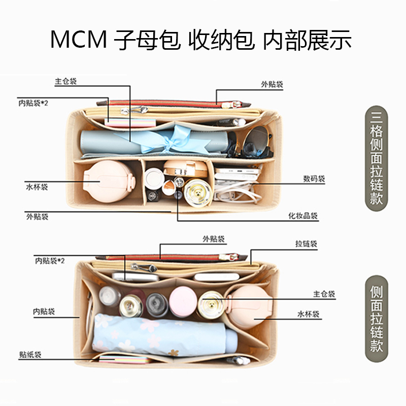 Ropia Fish MCM Double Sided bag in bag primary and secondary mommy bag mid-package ultra light inner lining bag liner bag in bag