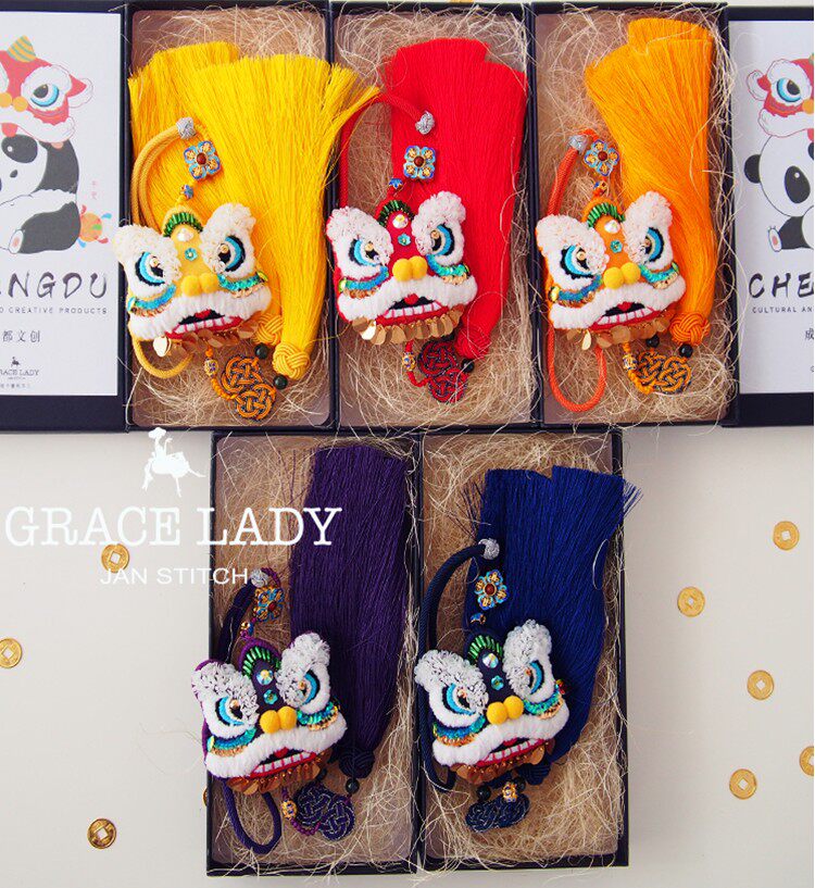 Shuangliu awakening lion finished car pendant self-embroidered Ping An Fu Ping Fu handmade diy purse embroidery couple sachet