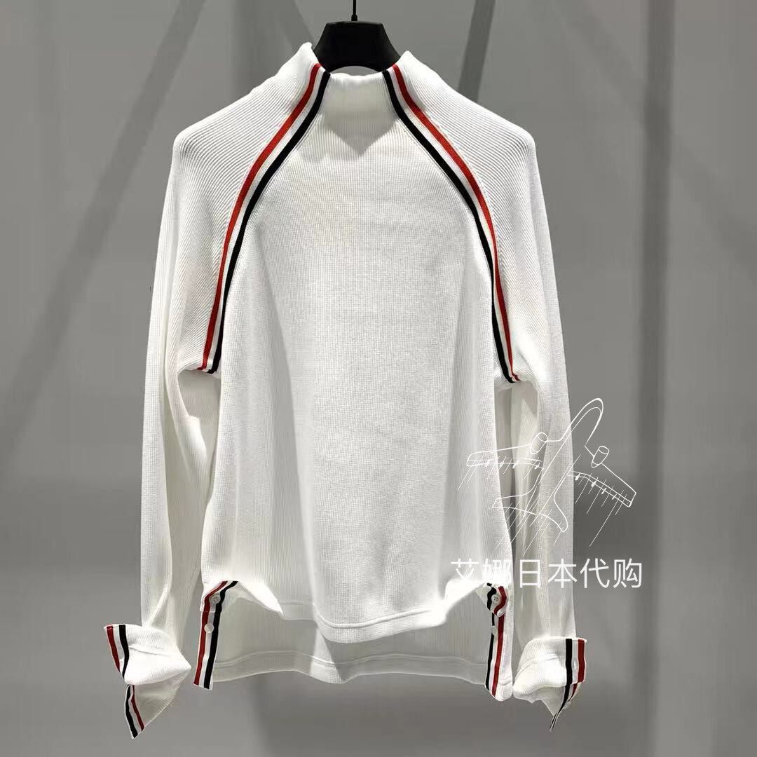 Aina Ridai Thom Browne 20 autumn and winter TB white color decorative knitted turtleneck sweaters - Taobao