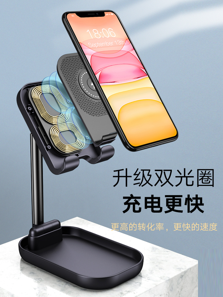 Mobile Phone Bracket Wireless Charger Adjustable Lifting Desktop Apple 12 Live App Suitable for 11 Huawei Creative Simple 13 Small Portable Folding Telescopic Lazy Multifunctional Tablet Chasing Drama Artifact