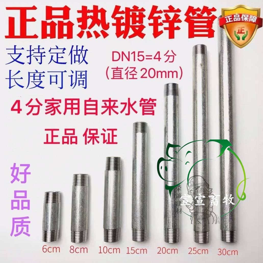 4 points water pipe galvanized steel pipe outer wire to wire water pipe iron pipe round pipe double head wire extension pipe plumbing pipe 15