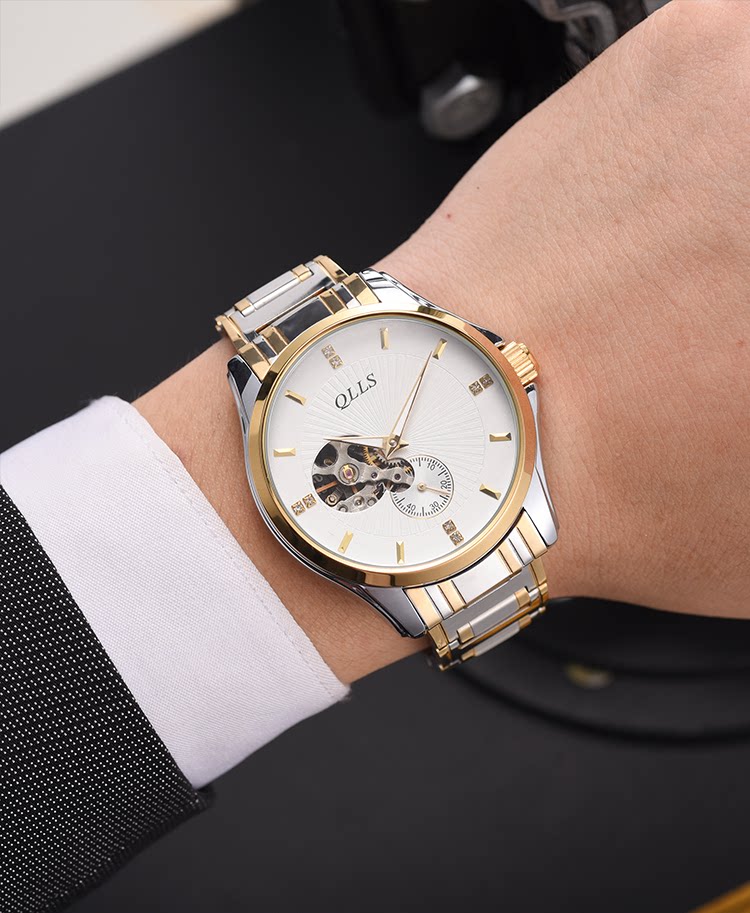 Qilo 2020 new watch men's fully automatic mechanical watch hollowed tourbillon steel belt student watch