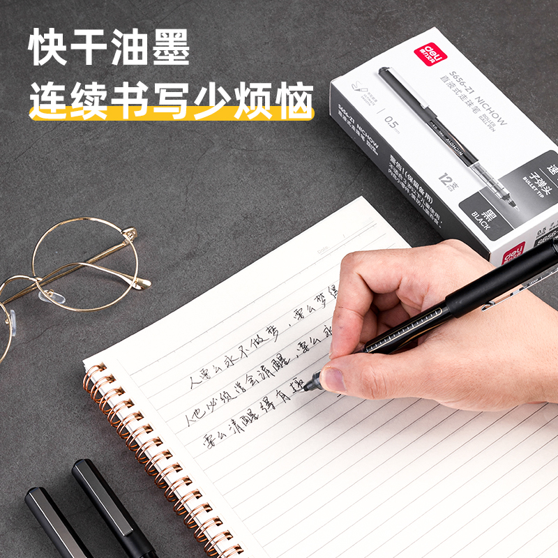 Derri S656-Z1 quick-drying straight type gel pen ball pen 0 5mm Black quick-drying student bullet head carbon pen signature pen straight pen black water pen for business learning
