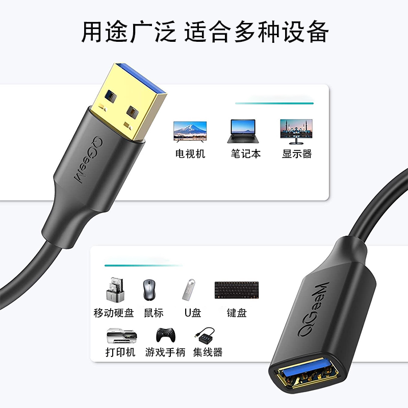 QGeeM usb extension cable male-to-female data cable usb 3 0 interface high-speed connection computer printer mouse keyboard mobile hard disk game handle extension line 1 meter 1 8 meters