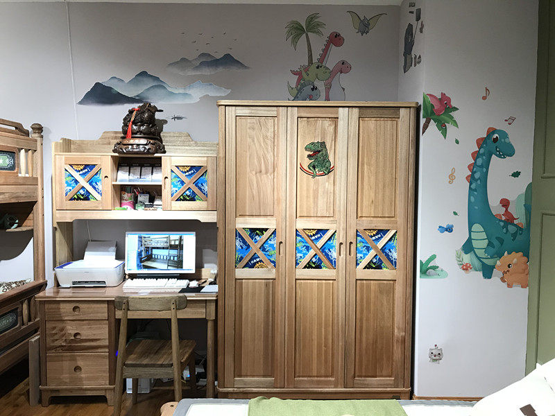 Barbiter Sandalwood Pure Solid Wood No Paint Green Environmental Protection Children Dinosaur Age Character Desk Bookshelf Attached Cabinet