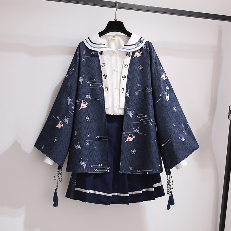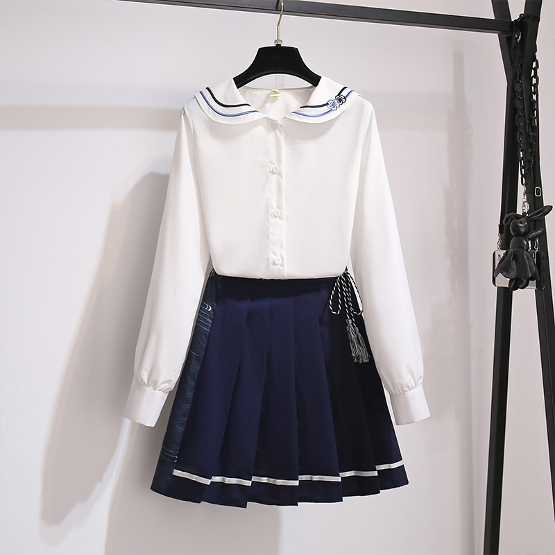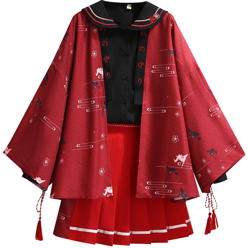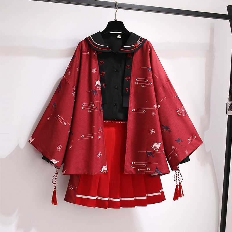 Early autumn improved light Hanfu elements retro women's red dress overcoat shirt pleated skirt three-piece suit