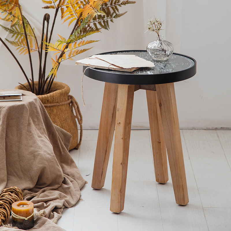 American retro round coffee table solid wood carved tempered glass coffee table side a few small apartment living room tea table round table