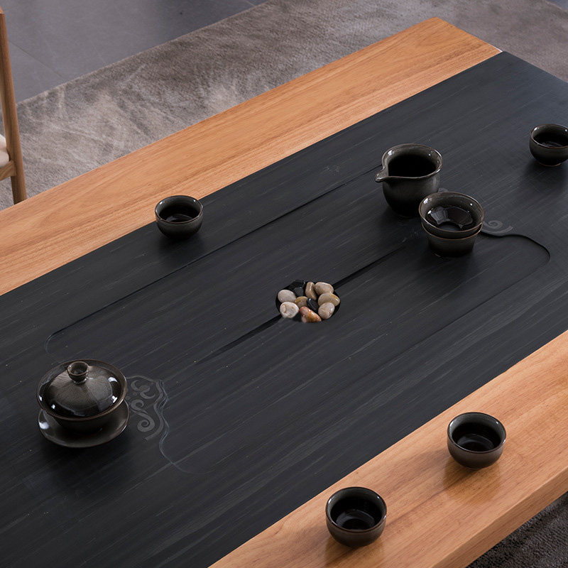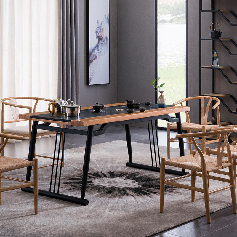 Office tea table table wood grain stone tea table and chair combination stainless steel shelf