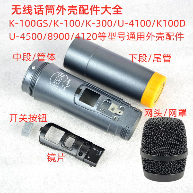 Switch button Lens assembly Lower tail tube A middle body a net head net cover An original microphone core An old motherboard U-frame An old motherboard tow rack A battery rack A look at the picture description