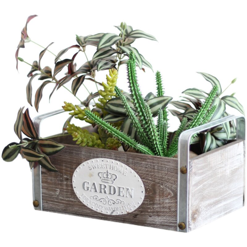Garden groceries solid wood binaural suitcase retro old decorative drawer simulation flower container box combination set