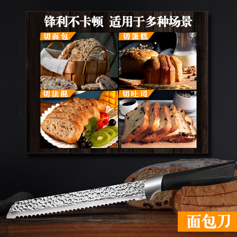All-steel bread knife Hammered bread knife Black handle bread knife