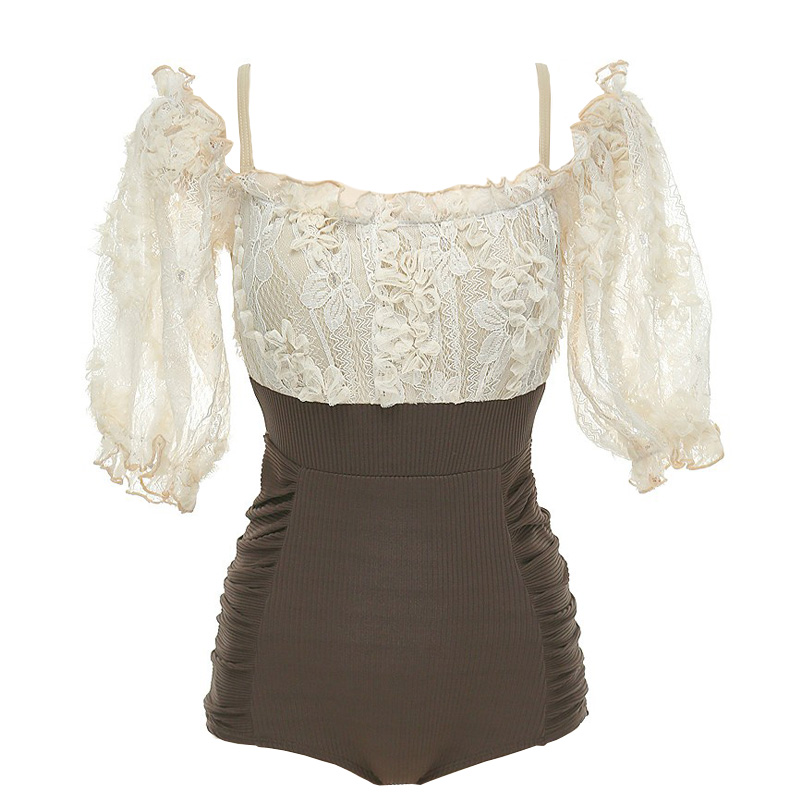 Swimsuit women's 2021 new one-piece sexy thin small chest cute open back lace conservative belly cover hot spring swimsuit