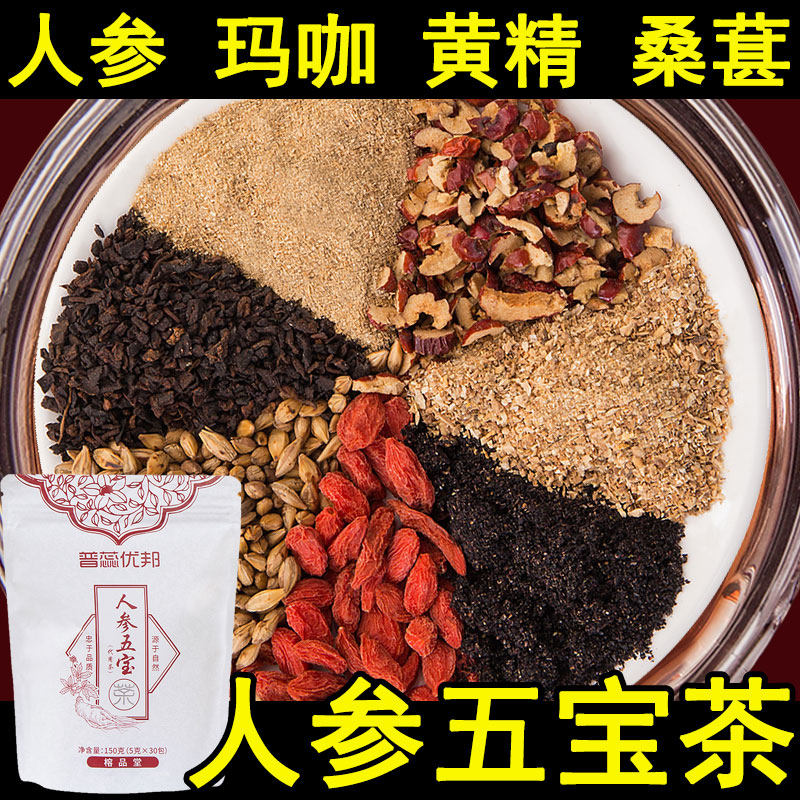 Men's Five Treasure Tea Health Tea Yellow Essence Goji Berry Ginseng Stay Up Late Men Kidney Tea Essence Supplement Health Care Red Jujube Kidney Tea