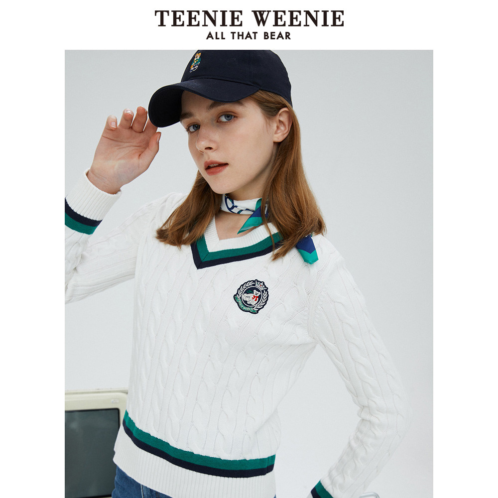 TeenieWeenie Bear V-collar Color Woman Color Color Color Woman College Wind Wind and Knitted Sweater
