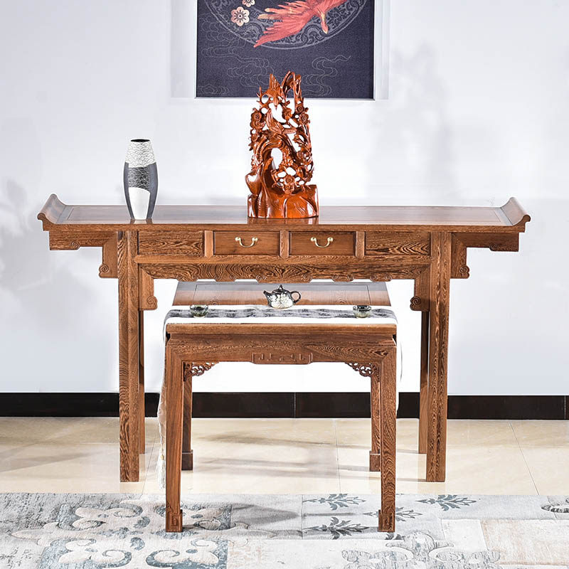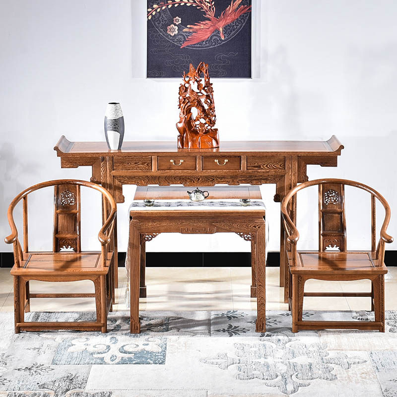 Mahogany furniture chicken wing wood center hall six-piece set of solid wood offering table eight immortals table Chinese style table table god table four-piece set