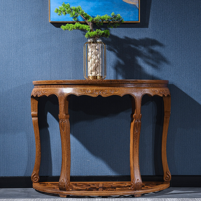 Mahogany furniture wenge semicircle porch table solid wood porch table wall living room side table shelf flower stand light stand