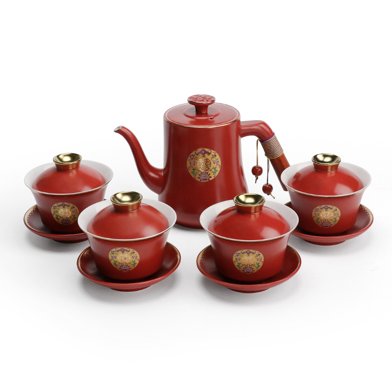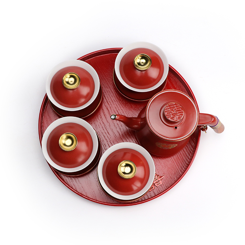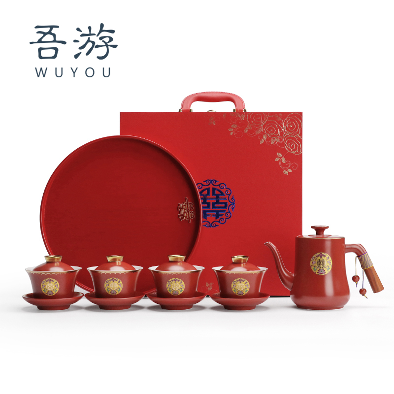 I travel wedding toast teacup set wedding hi bowl hi cup gift box red tea cup cover bowl wedding supplies Daquan