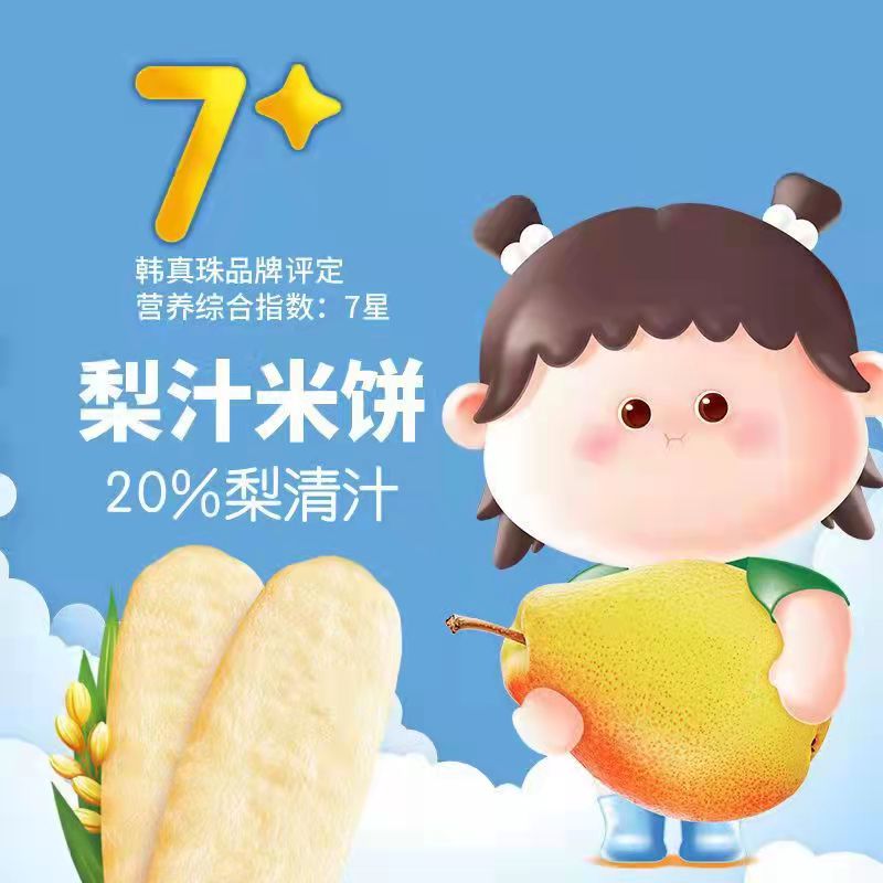 Pear juice rice cakes, 1 can of soft biscuits, cod rice cakes, 1 can of soft biscuits, cod pear juice, 1 can of air milk stick, 2 boxes of cod flavor, 1 can of air milk stick, 2 boxes of pear juice flavor, and 1 air milk stick