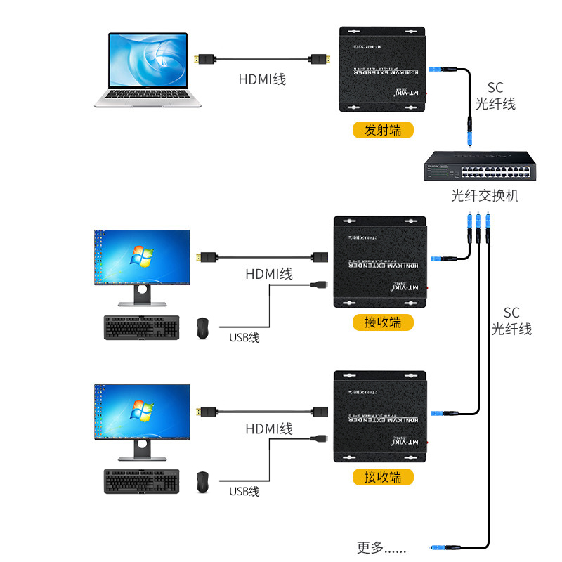 Maitraovile moment MT-HK020 HDMI KVM fiber extender single mode single fiber SC mouth optical transmitter and receiver 20KM with USB key mouse prolong control signal amplifier-Ta