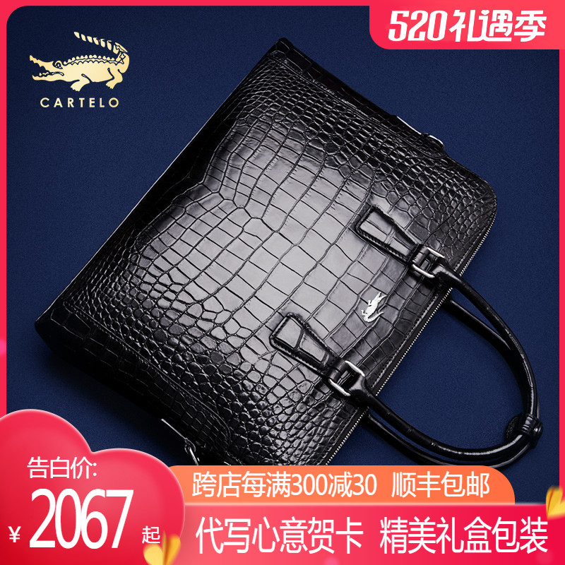 Singapore CARTELO avocado leather handbag men's 2022 new business double zipper men genuine leather briefcase