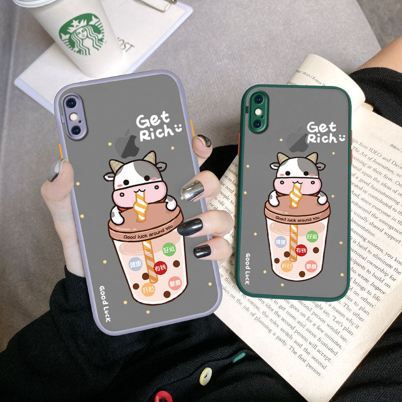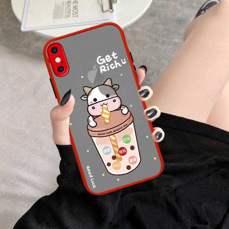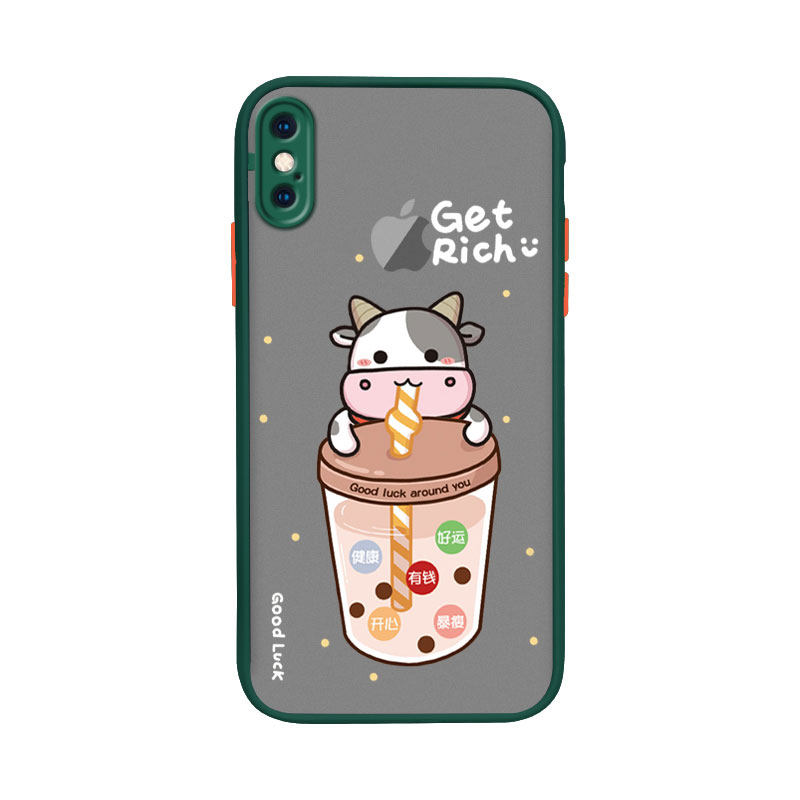 Apple x mobile phone protective shell milk tea cow silicone apple xr new year wishes iPhonex personality creative apple xsmax net red iphonexr all-inclusive anti-fall xs couple tide men and women