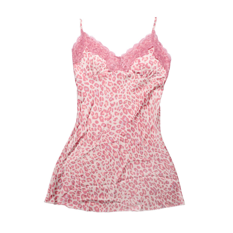 Silk skin-friendly BAO WENV collar pajamas silk sling nightdress with chest pad sexy low-cut lace short skirt summer