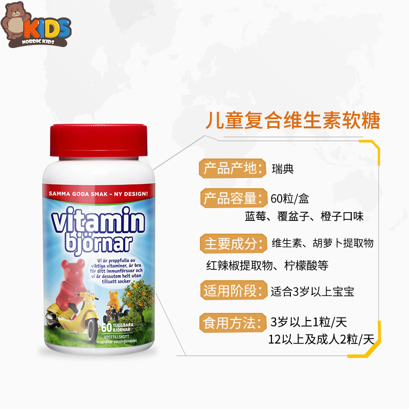 Swedish ActiveCare children compound vitamin B family small bear soft sugar fruity 0 cane sugar supplement va vc vd