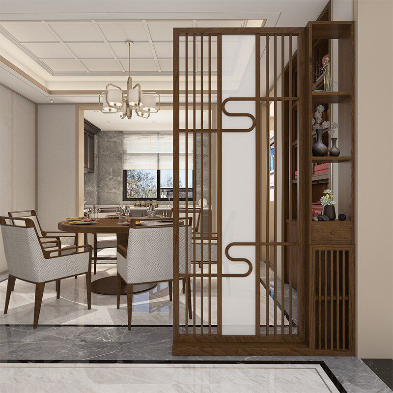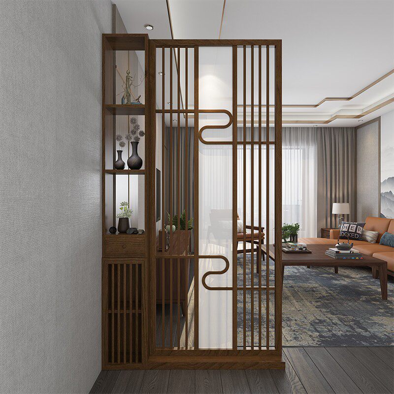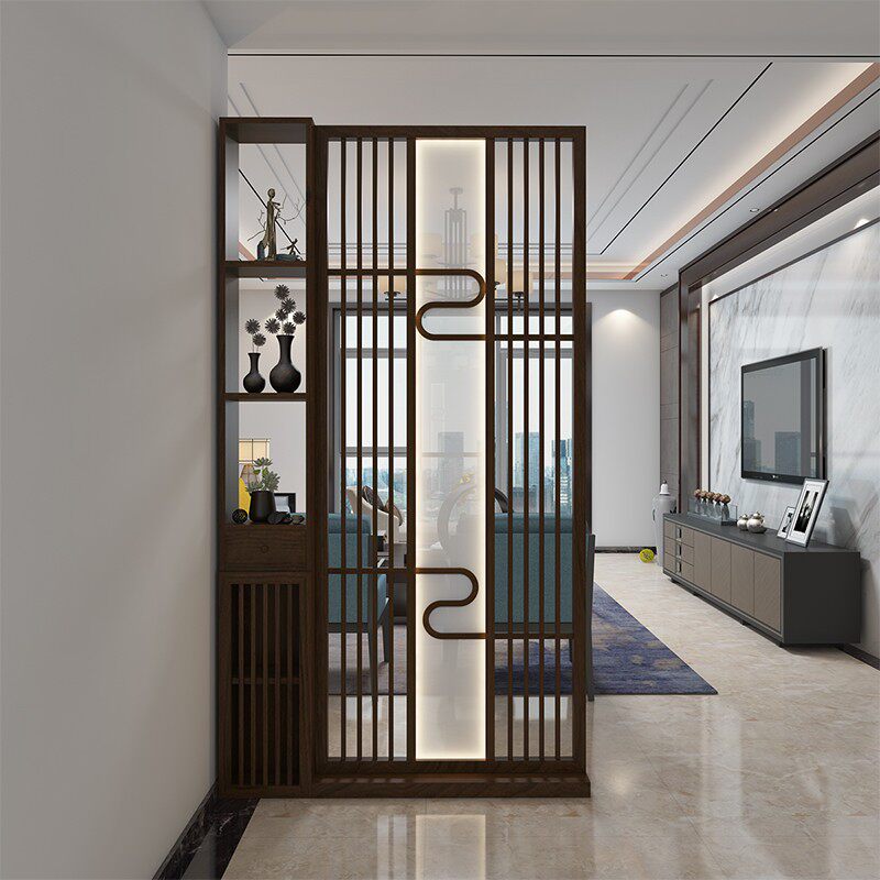 New Chinese solid wood shelve screen partition Living room Hotel office Fence Hollowed-out Creativity Belt Light-Guan Guan Cabinet
