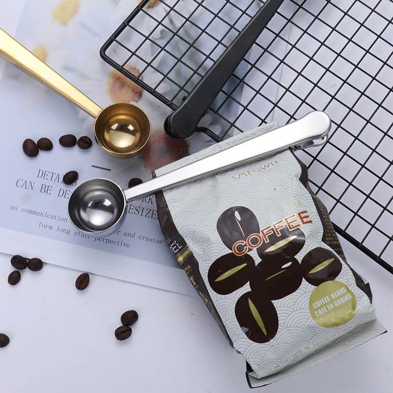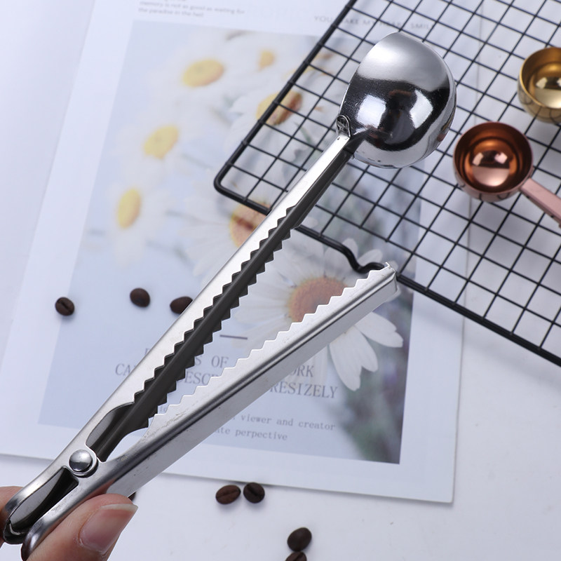 Stainless steel coffee spoon sealing clip dual-use spoon coffee appliance sealing clip measuring bean spoon bag milk powder clip