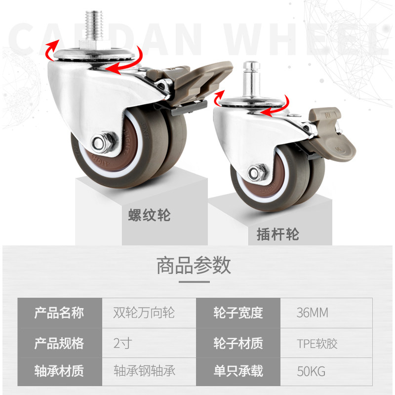 UNIVERSAL WHEELS 2 INCH DOUBLE WHEELS WIRE ROD INSERT ROD SNAP SPRING BOSS CHAIR IKEA SWIVEL CHAIR COMPUTER CHAIR OFFICE CHAIR SLIP MUTED