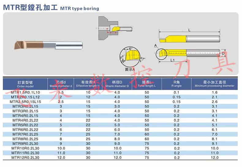 XET overall alloy inner hole fine boring cutter tungsten steel MTR small aperture boring cutter 1 5 2 2 5 3 4 5 6 7mm