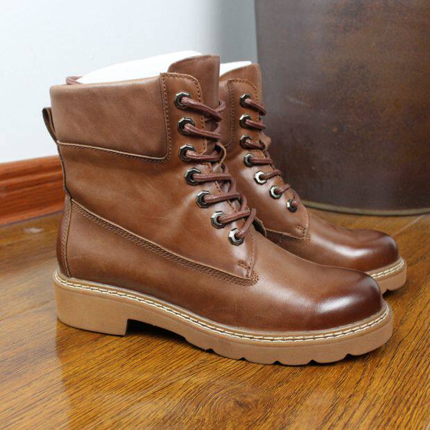 Women's high top lace-up round head solid color light casual flat women's leather shoe SD1050