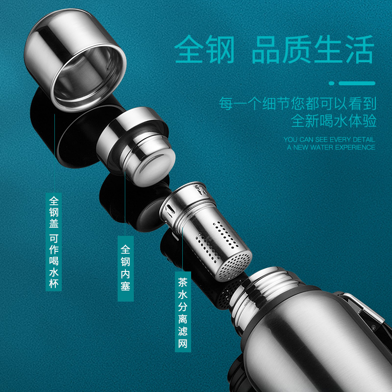Qihu 316l stainless steel thermos cup 1500ml kettle large capacity men's high-end water Cup custom logo