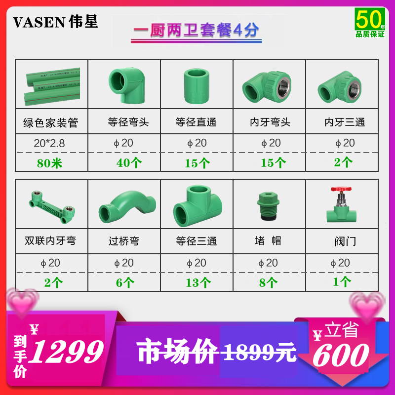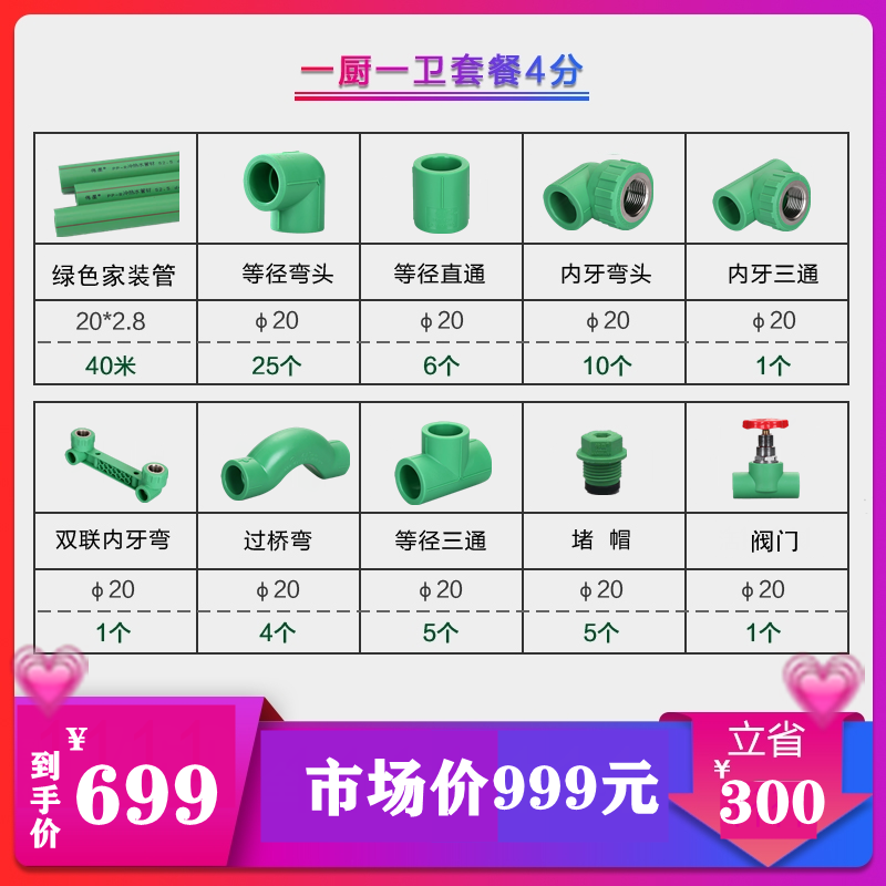 Great Star PPR Water pipe accessories Elbow Tee Double inner bend stop valve Home Hot melt Direct 6 Sub-green 25