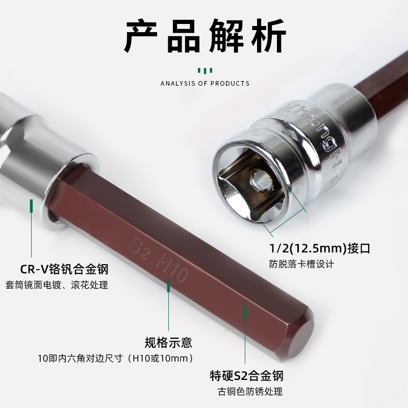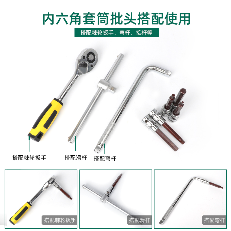 Inner hexagonal socket head set combination screwdriver S2 lengthened 1 2 electric inner 6-angle screwdriver socket batch head wrench