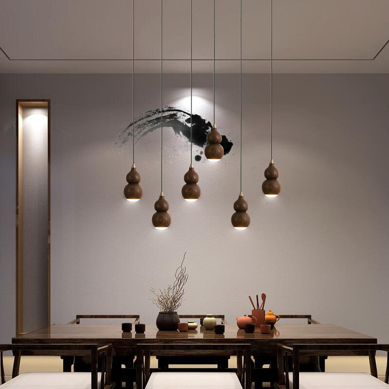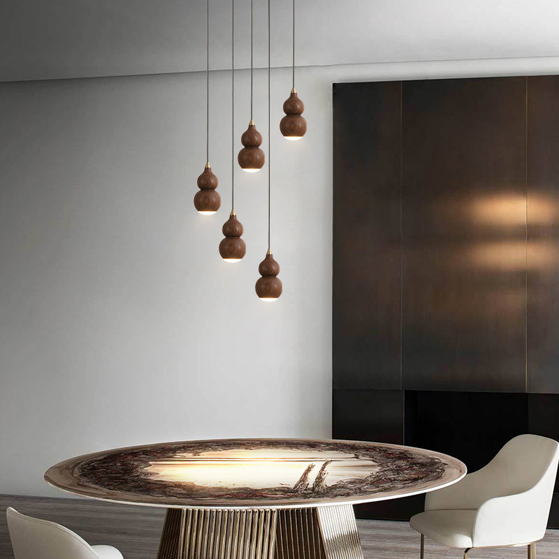 Gourd chandelier-single walnut copper-warm light gourd chandelier-3 disc walnut copper-warm light gourd chandelier-3 straight walnut copper-warm light gourd chandelier-5 disc walnut