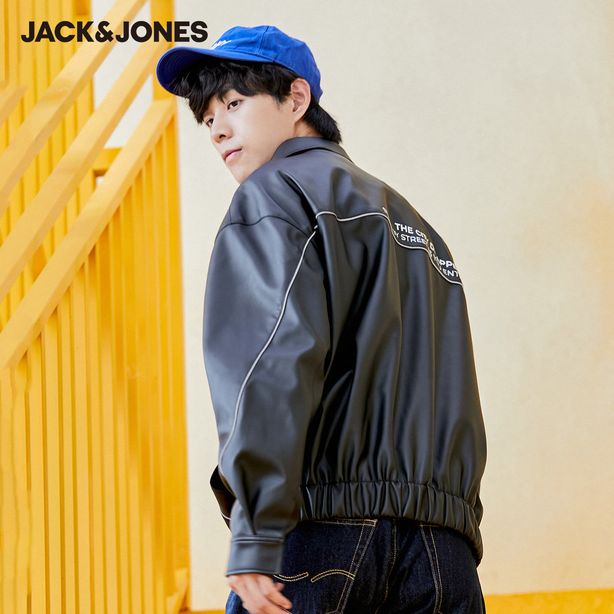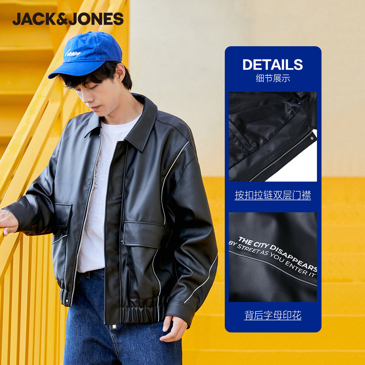 Jack Jones autumn and winter clothes new men's loose tide top clothes PU leather jacket jacket INS Korean style bag