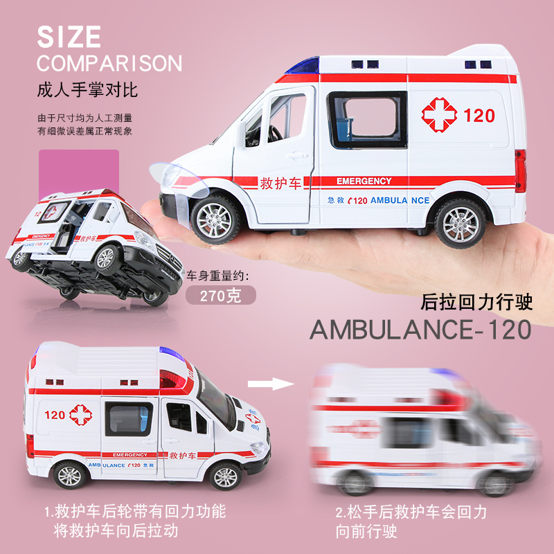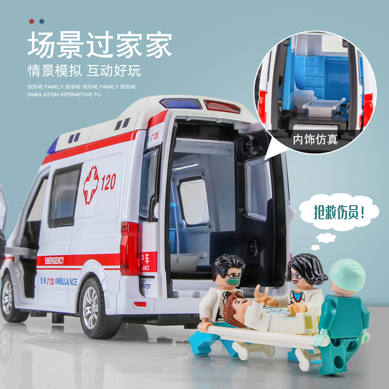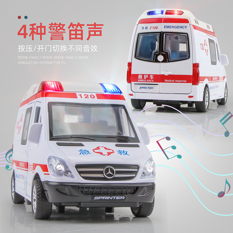 Black special police car (1 ratio 32 gift boxes with 5 doors sound and light return function) white ambulance (1 ratio 32 gift boxes loaded 5 sound and light return force function) Red fire truck (1 ratio)