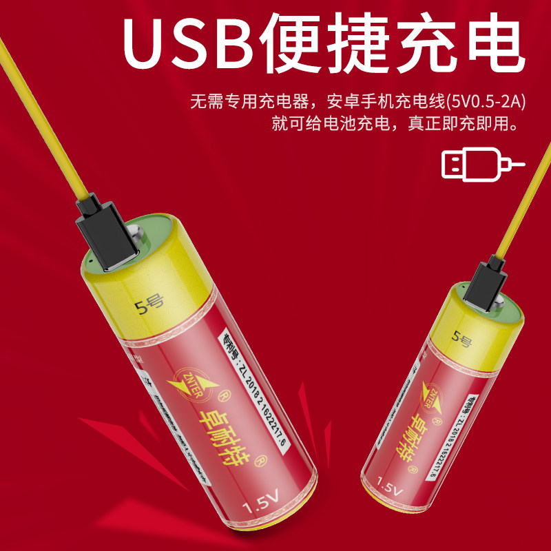 Zhunette 5 USB rechargeable lithium battery AA suit Large capacity 5 1 5V constant pressure microphone toy special