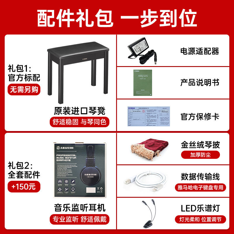 Standard + original piano stool Standard + original piano stool + accessories package