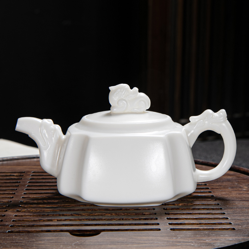 East Home Original Deed white Porcelain Teapot Kettle Goat Grease Jade Porcelain Kettle Dragon Pot Ceramic Bubble Teapot