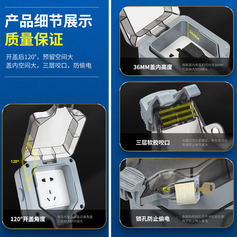 Deepening waterproof box + leakage three holes 16A Deepening waterproof box + leakage five holes 10A