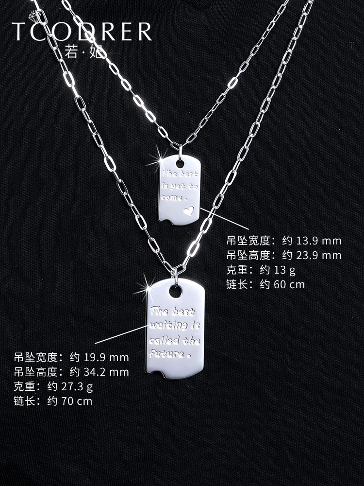 Platinum necklace male pt950 platinum tag single pendant men and women personalized couple Platinum custom lettering