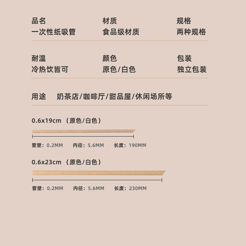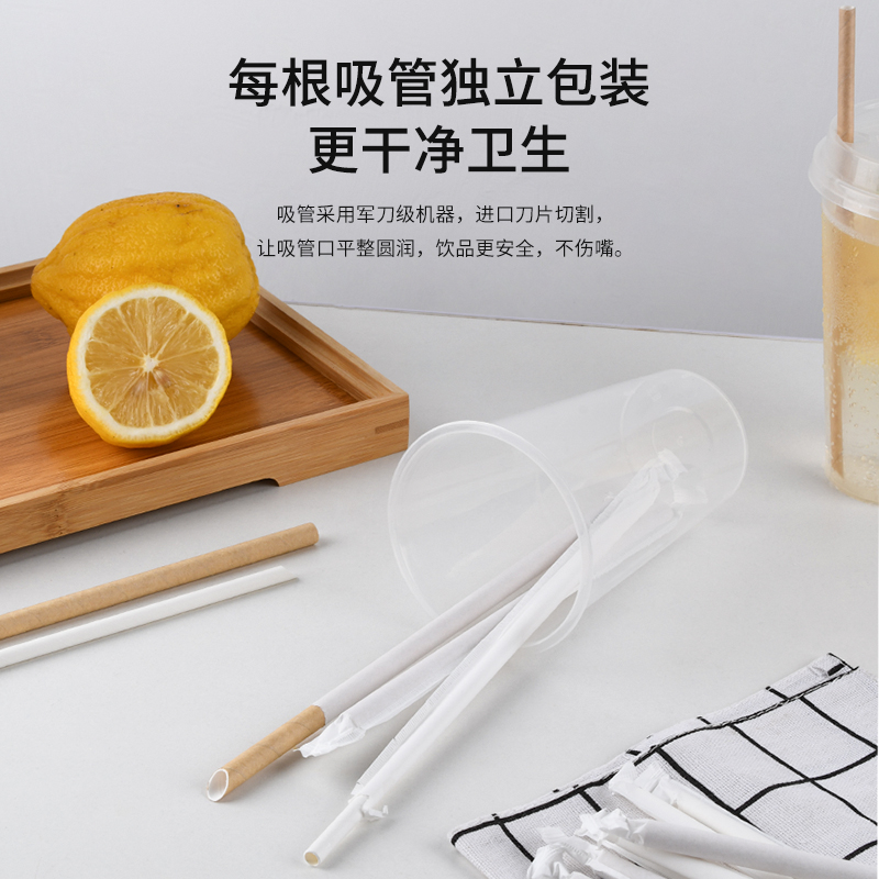 Disposable paper environmentally friendly degradable pointed individual packaging coffee milk tea kraft paper soy milk yogurt small straw