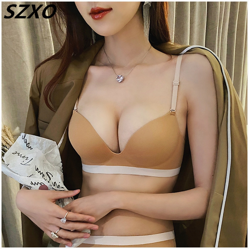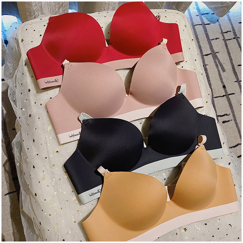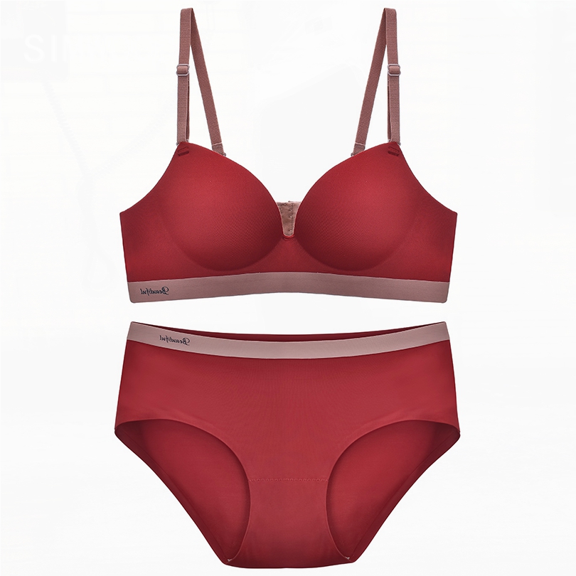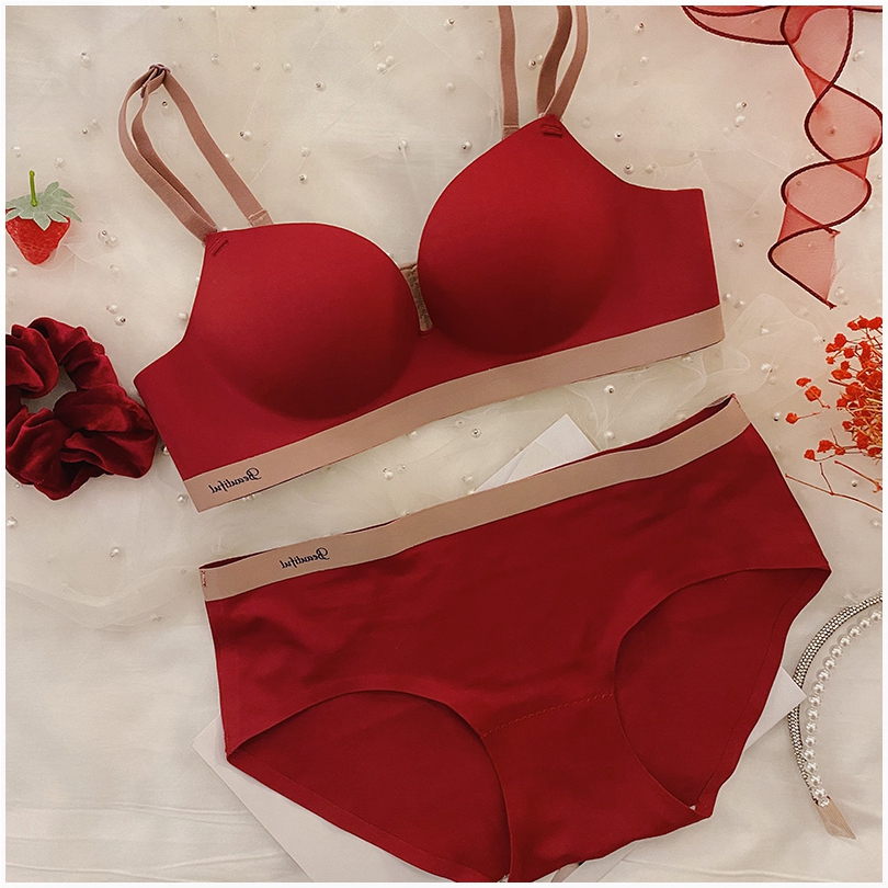 South Korea SZXO incognito red underwear women's small chest gathered sexy adjustment type rimless year of life underwear set