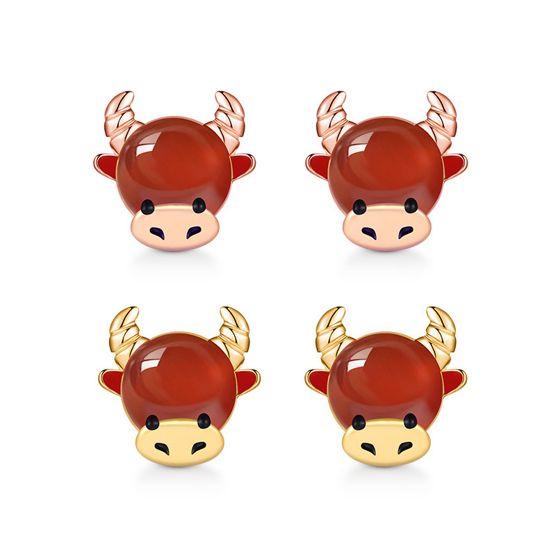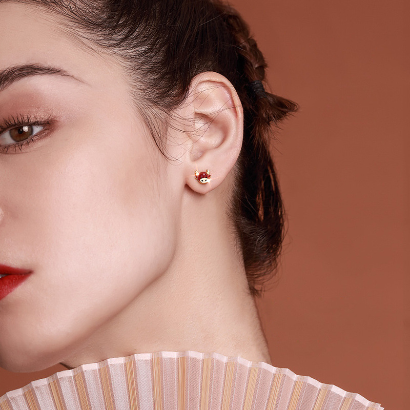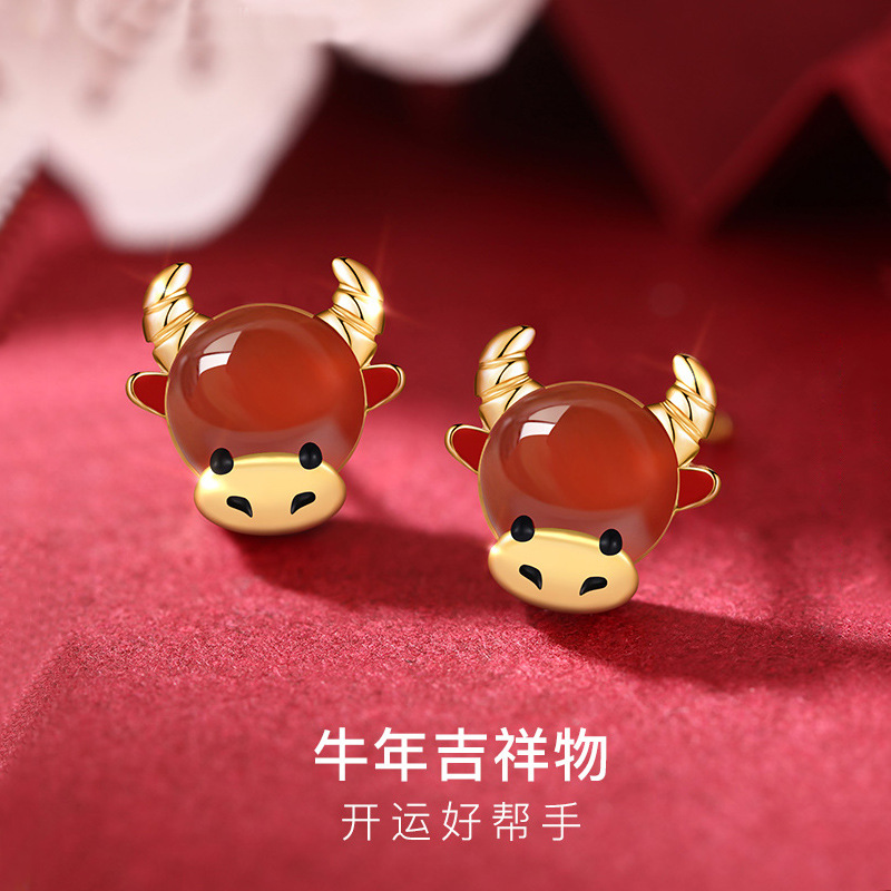 Mengzu ear nails are the birthday of the annuity of the new red pink bull tide 925 silver ear decoration in 2021