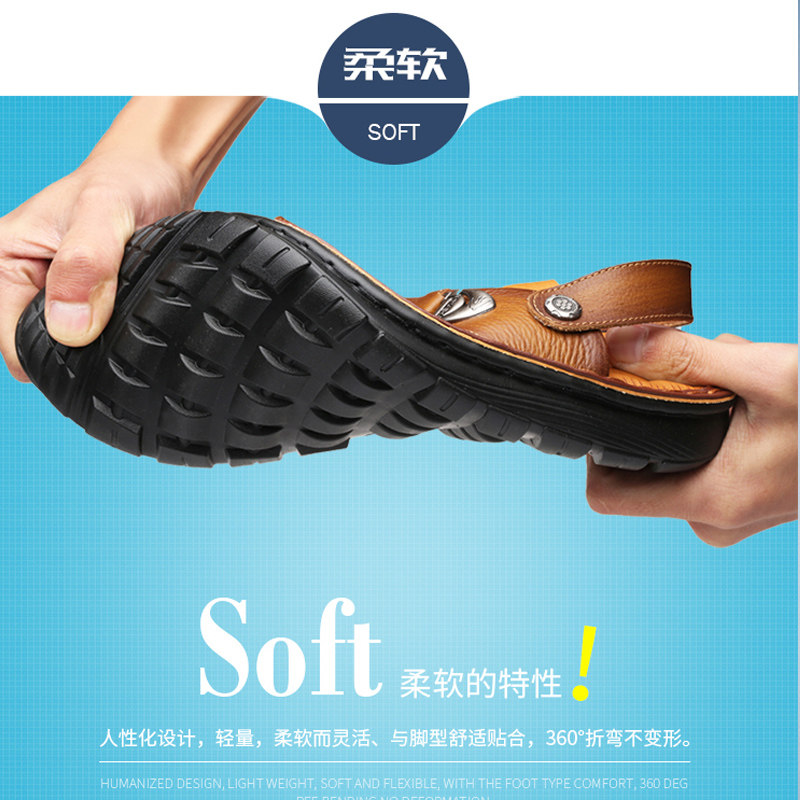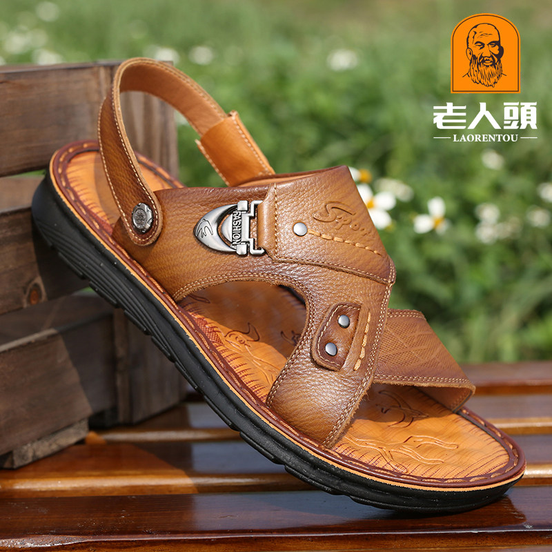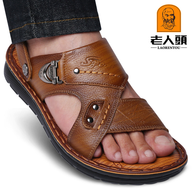 Old man's head beach shoes man leather head skin toe sandals men's shoes official flagship store